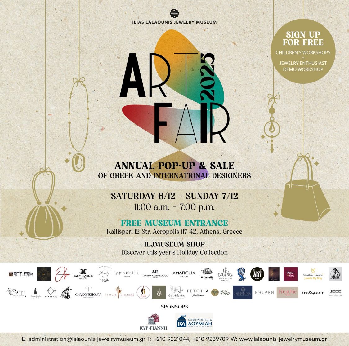 ILJMuseum ART FAIR 2025 Pop up & Sale Event Σάββατο 6 & Κυριακή 7 Δεκεμβρίου στο Μουσείο Κοσμήματος Ηλία Λαλαούνη Είσοδος Ελεύθερη Το Μουσείο Κοσμήματος Ηλία Λαλαούνη ανακοινώνει τη διο [...]
